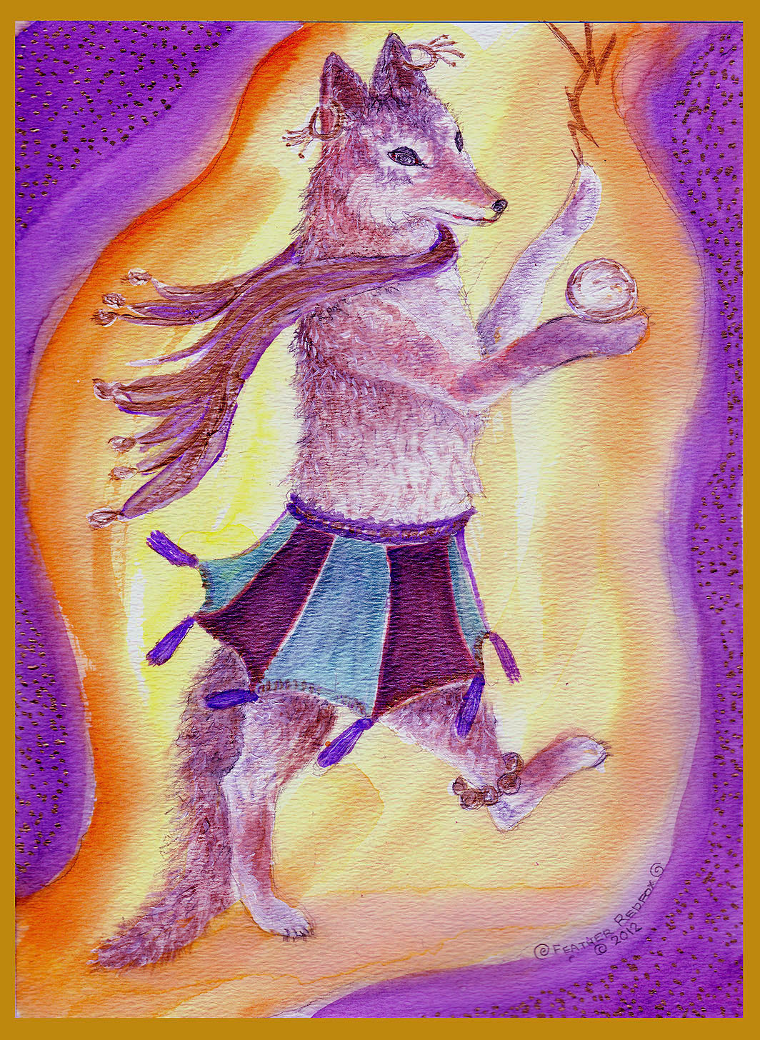 In Traditional Native mythology, the coyote can be a Heyoka, known for its wily ways and trickster energy. In American cartoons, we see coyote energy, but it is portrayed as being easily out smarted in the road runner cartoons. In Native American lore, the coyote is an honored teacher, one who teaches with absurdity and humor. It tricks and makes us laugh at ourselves while pointing out our own absurd beliefs and behaviors. It is often the clown energy as well and is ribald, rude and opens our minds to possibilities that we may not have thought of or believed possible. Sometimes it brings us pain and punishes us for misbehavior. Clowns sometimes also heyoka, may whip individuals at dance ceremonies with switches, if they have fallen into behaviors that are harming themselves or the tribe. These beings may also mock what we see as sacred and in that way helps us to be more open to new possibilities, new ways of doing things. Heyoka energy has many roles but for us, the most important is to encourage us to stop letting our minds control our every move.